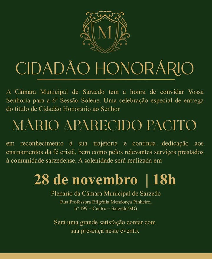 • CONCESSÃO DO TÍTULO DE CIDADANIA HONORÁRIA AO PASTOR MÁRIO APARECIDO PACITO, CONFORME RESOLUÇÃO Nº 18, DE 29 DE SETEMBRO DE 2025.