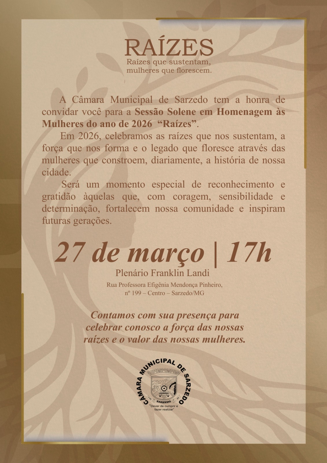• CONVITE ÀS PERSONALIDADES HOMENAGEADAS, QUE REPRESENTAM TODA A CLASSE FEMININA DE SARZEDO, PARA OCUPAREM OS LUGARES A ELAS RESERVADOS.